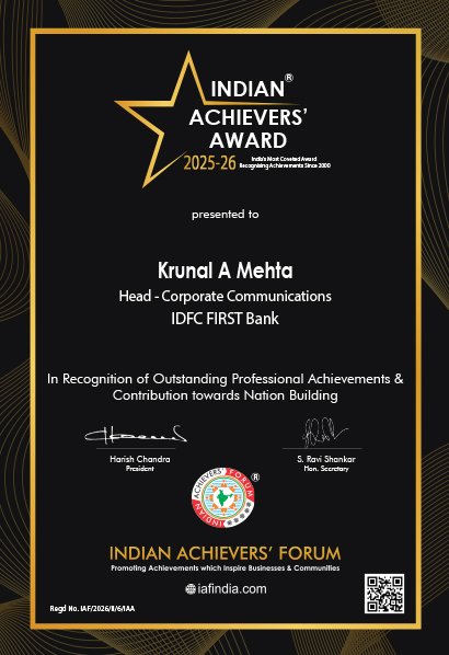 With a strong inclination toward 360 degree marketing, branding, Corporate Communications and digital growth, Krunal has focused on building authority-driven impact. His approach goes beyond execution—he thinks like a leader, operates like a strategist, and delivers like a performer. Whether shaping brand narratives, optimizing digital presence, or driving business growth, he brings clarity, structure, and measurable outcomes to the table.